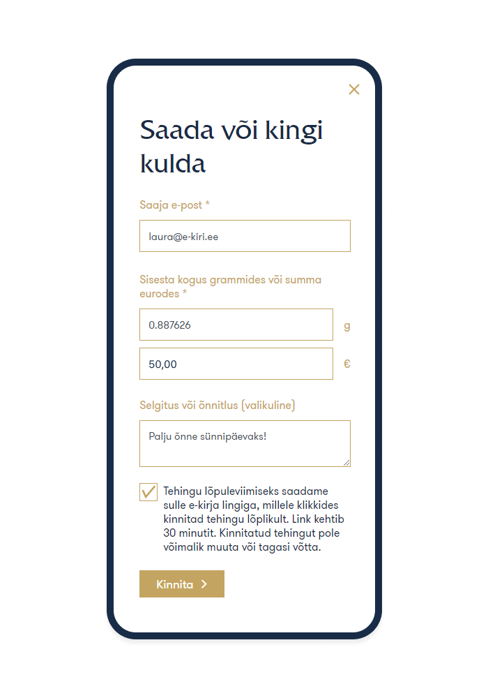 | Saaja saab kulla koheselt kätte. Kui tal pole Auforti kullakontot, saab ta juhised selle registreerimiseks. | ![]() ![]() |